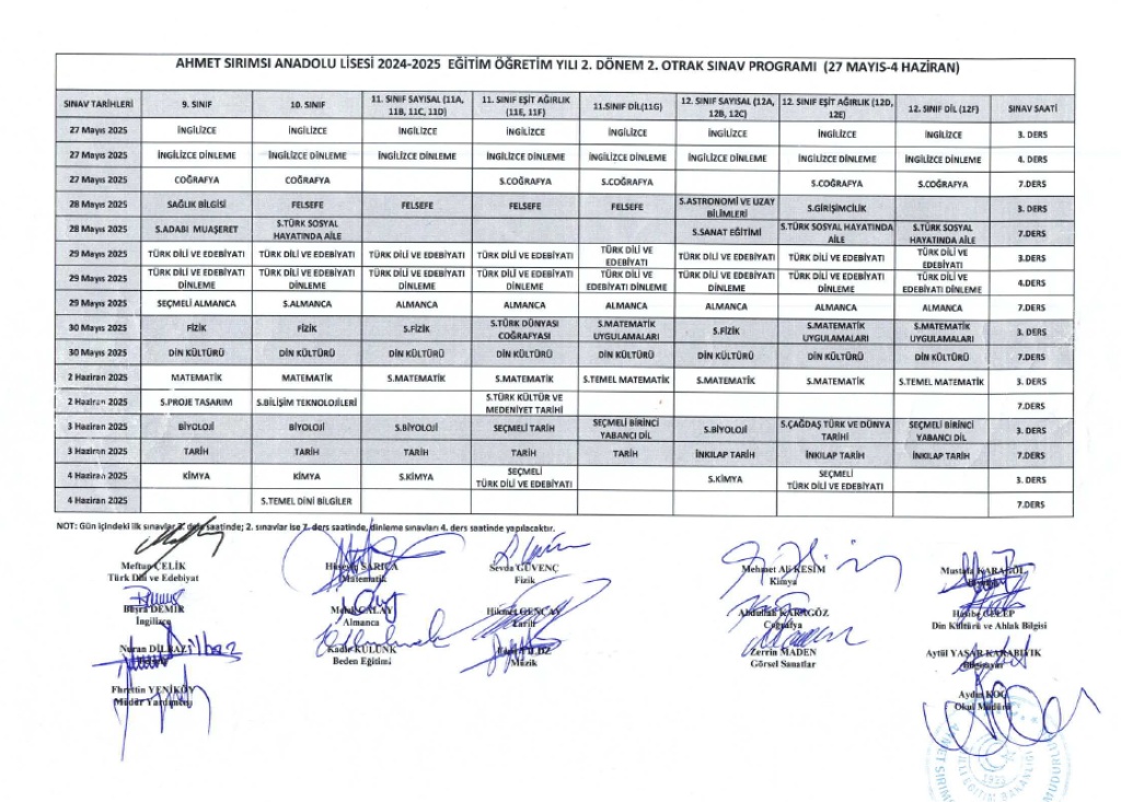 2024-2025 ÖĞRETİM YILI 2.DÖNEM 2.ORTAK SINAV TARİHLERİ