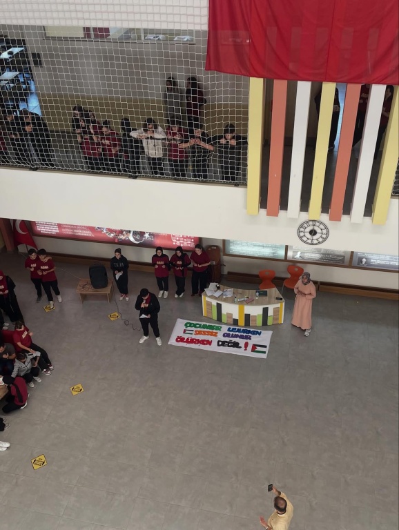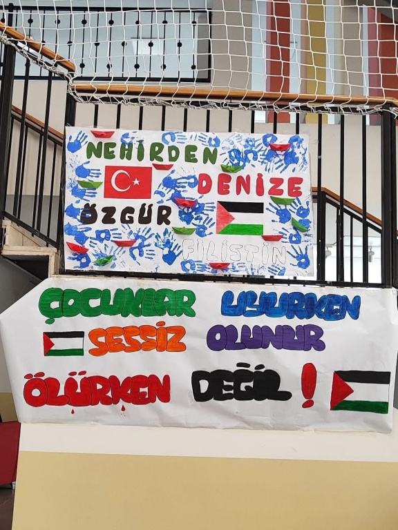 Okulumuzda “Filistin Farkındalık Etkinlikleri” kapsamında çeşitli etkinlikler gerçekleştirildi. Program süresince Filistin halkının yaşadığı zorluklara dikkat çekilerek barış, insan hakları ve dayanışma temaları ön plana çıkarıldı. Öğrencilerimiz hazırladıkları afişler, sunumlar ve kısa gösterilerle konuya olan duyarlılıklarını ortaya koydular. Etkinlik, öğrencilerimizin evrensel değerlere olan farkındalığını artırarak anlamlı bir katkı sağladı.